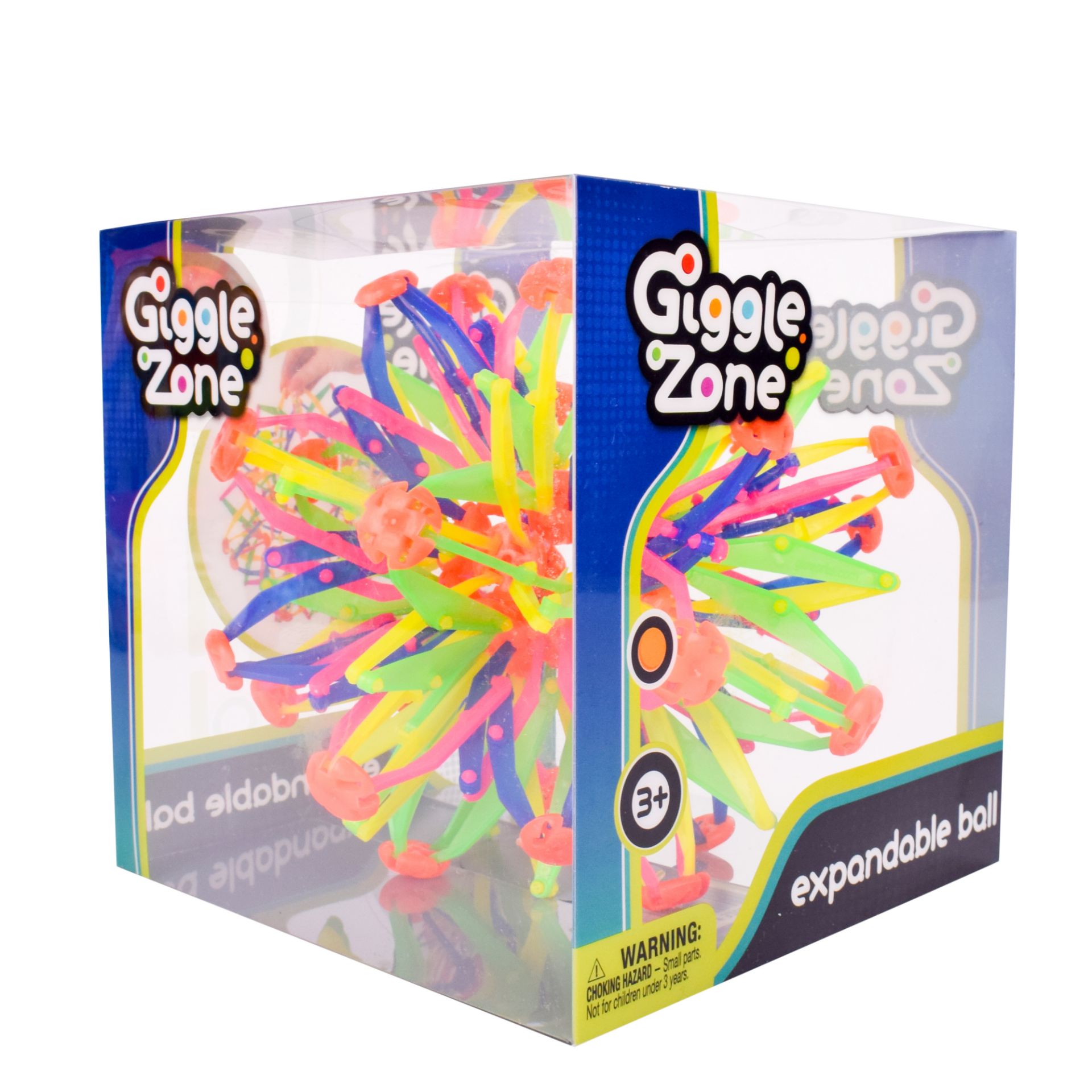Push, pull, roll or toss the Giggle Zone Expandable Ball to watch it shrink and grow! With bright rainbow colors and geometric shape, this lightweight toy starts at 6.5” and expands to 13” in diameter! Open the Expandable Ball to a giant sphere and play a game of catch with friends or transform it into a small geometric star and use it as a tactile fidget toy for hours of entertainment. The fidget sphere can also be used as a tool to soothe anxiety and improve concentration by shrinking and growing with your breath to increase focused thoughts, calm down or soothe anxiety. Whether for fun or focus, you can endlessly reuse this long-lasting toy that is perfect for keeping hands busy and relieving stress! Designed with durable, non-toxic materials, the Expandable Ball is perfect on-the-go fidget fun for adults and children ages 3 and up!